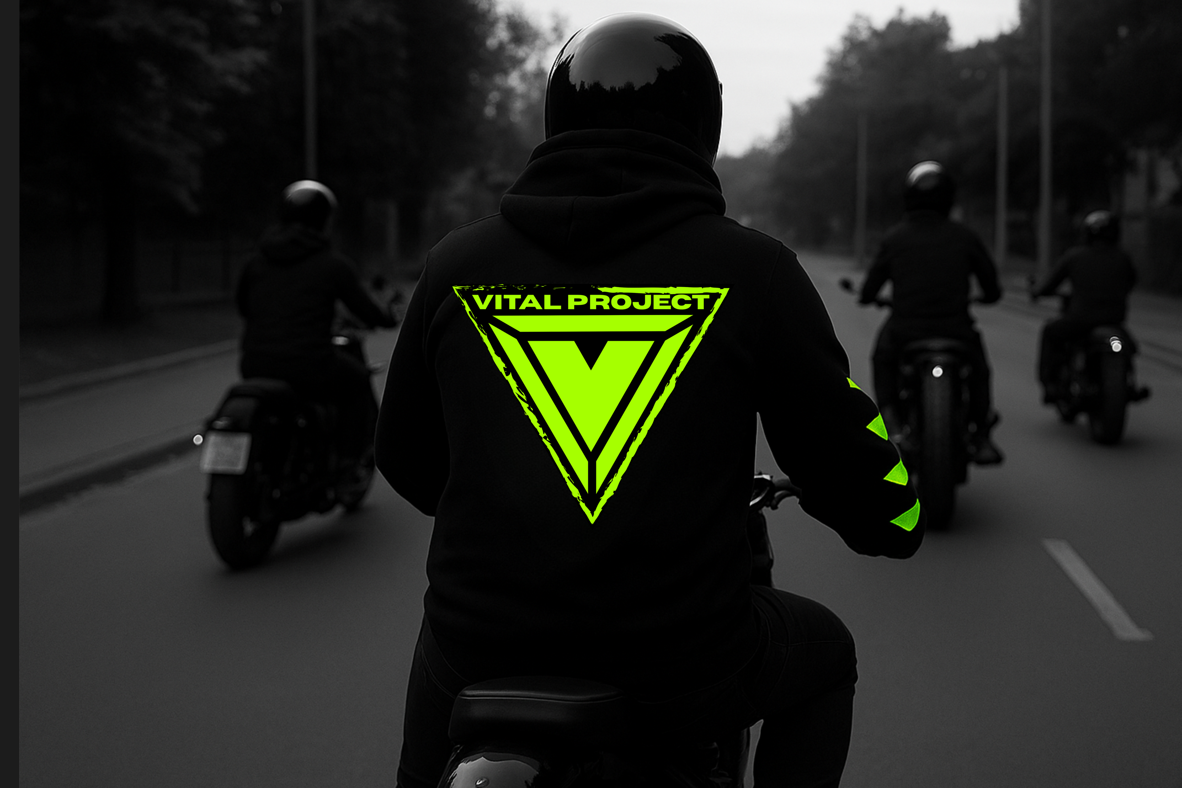 Exclusively on Original VITAL Hoodies: integrated reflective details that enhance visibility in low-light conditions—without sacrificing style.
